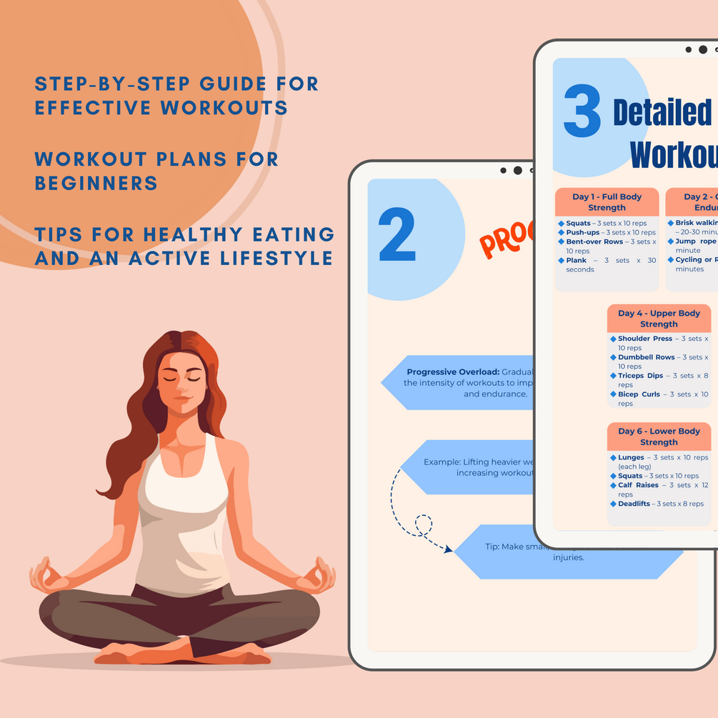 📖 A complete beginner’s guide to fitness! 🏋️♂️ Workout plans, nutrition basics & motivation – everything you need to start your fitness journey! Get structured routines, meal tips & progress tracking in one easy-to-follow guide. 👉 Perfect for beginners looking to get fit & stay motivated!
